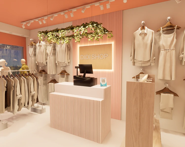 Didi Shop es una boutique de moda concebida como un espacio contemporáneo y sofisticado, diseñada para ofrecer una experiencia de compra cercana, fluida y estética, donde el producto y la marca se convierten en protagonistas. Proyecto de diseño interior comercial desarrollado para la tienda Didi Shop en Plaza Mundo Soyapango, enfocado en crear un espacio cálido, moderno y funcional, mediante una paleta cromática en tonos suaves, iluminación estratégica y mobiliario diseñado a medida para mejorar la organización y exhibición de los productos, fortaleciendo la identidad visual de la marca y la experiencia de compra del usuario.La propuesta de interiorismo se apoya en una paleta de materiales sobria y elegante, mobiliario diseñado a medida y una iluminación cuidadosamente estudiada, que realza texturas, colores y detalles del producto, generando una atmósfera cálida y atractiva. Didi Shop no solo funciona como un punto de venta, sino como un espacio de experiencia de marca, donde el diseño interior acompaña y potencia el concepto de boutique, invitando al cliente a recorrer, descubrir y conectar con la esencia de la marca.